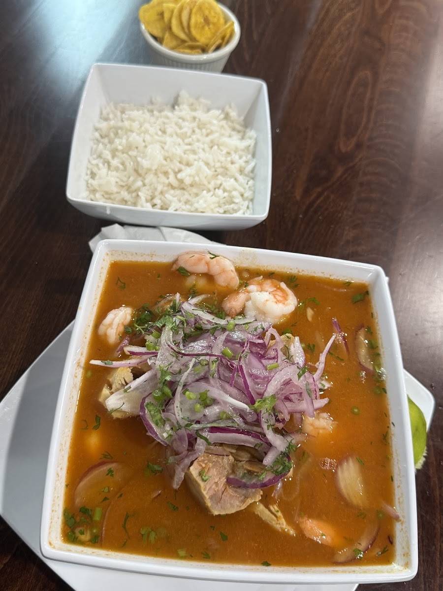 When it comes to the menu, The Flavor Of My Land Ecuadorian Restaurant doesn't disappoint. One of the standout dishes is the encebollado, a hearty Ecuadorian fish soup that combines tender pieces of fish, yuca, and pickled onions. It's the perfect balance of savory and tangy, offering a comforting yet bold flavor that will leave you craving more. If you're in the mood for something a little different, the lomo saltado is another crowd favorite. This Peruvian-inspired stir fry with beef, tomatoes, onions, and fries is packed with flavor and perfectly balanced with a side of rice.